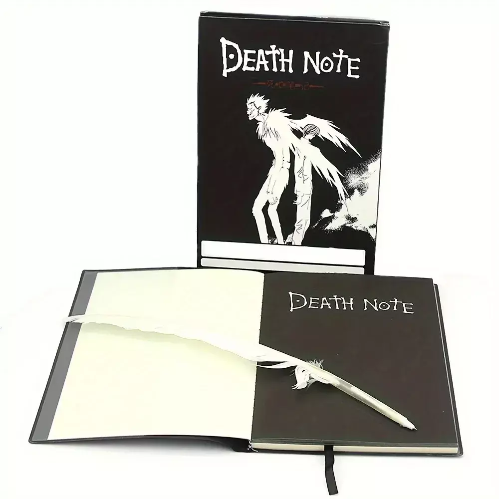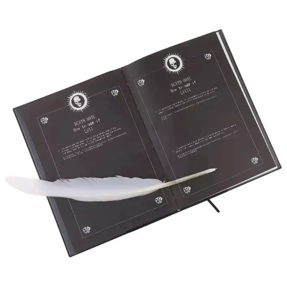 Entre na pele de Light Yagami ou L com este item de colecionador. Réplica fiel do Caderno da Morte, com a capa clássica, páginas em branco prontas para o seu nome e uma caneta pena para completar o visual.